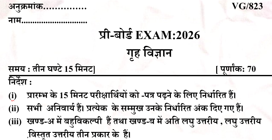 Class-10 Home Science 2026 Pre-board exam Download PDF || कक्षा-10 गृह विज्ञान 2026 प्री-बोर्ड परीक्षा मॉडल पेपर एकदम वायरल  पीडीऍफ़