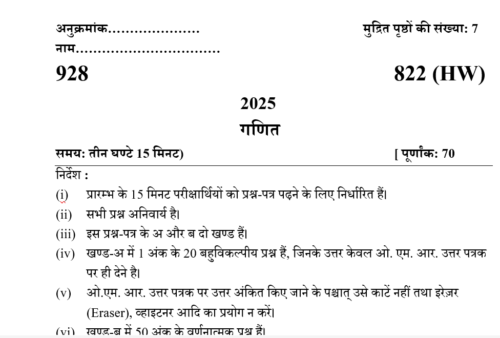 (i) प्रारम्भ के 15 मिनट परीक्षार्थियों को प्रश्न-पत्र पढ़ने के लिए निर्धारित हैं।