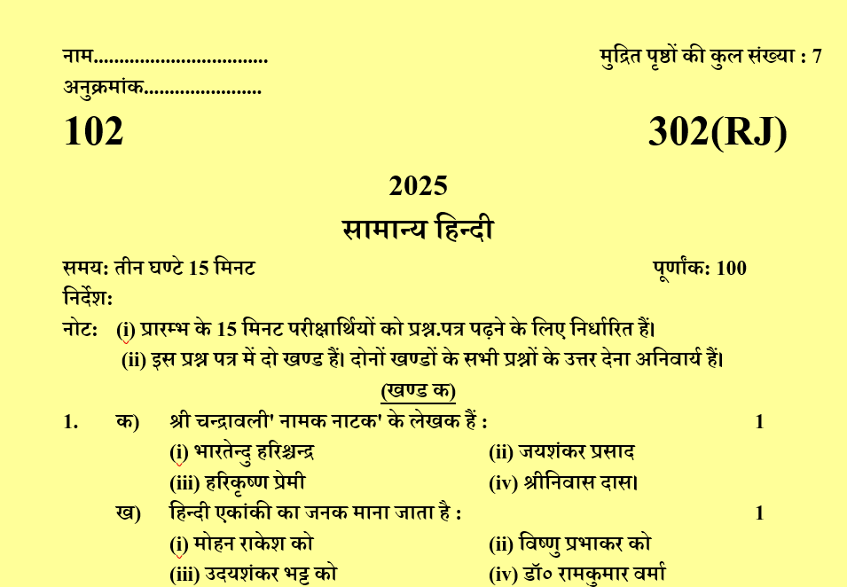 (ii) इस प्रश्न पत्र में दो खण्ड हैं। दोनों खण्डों के सभी प्रश्नों के उत्तर देना अनिवार्य हैं।