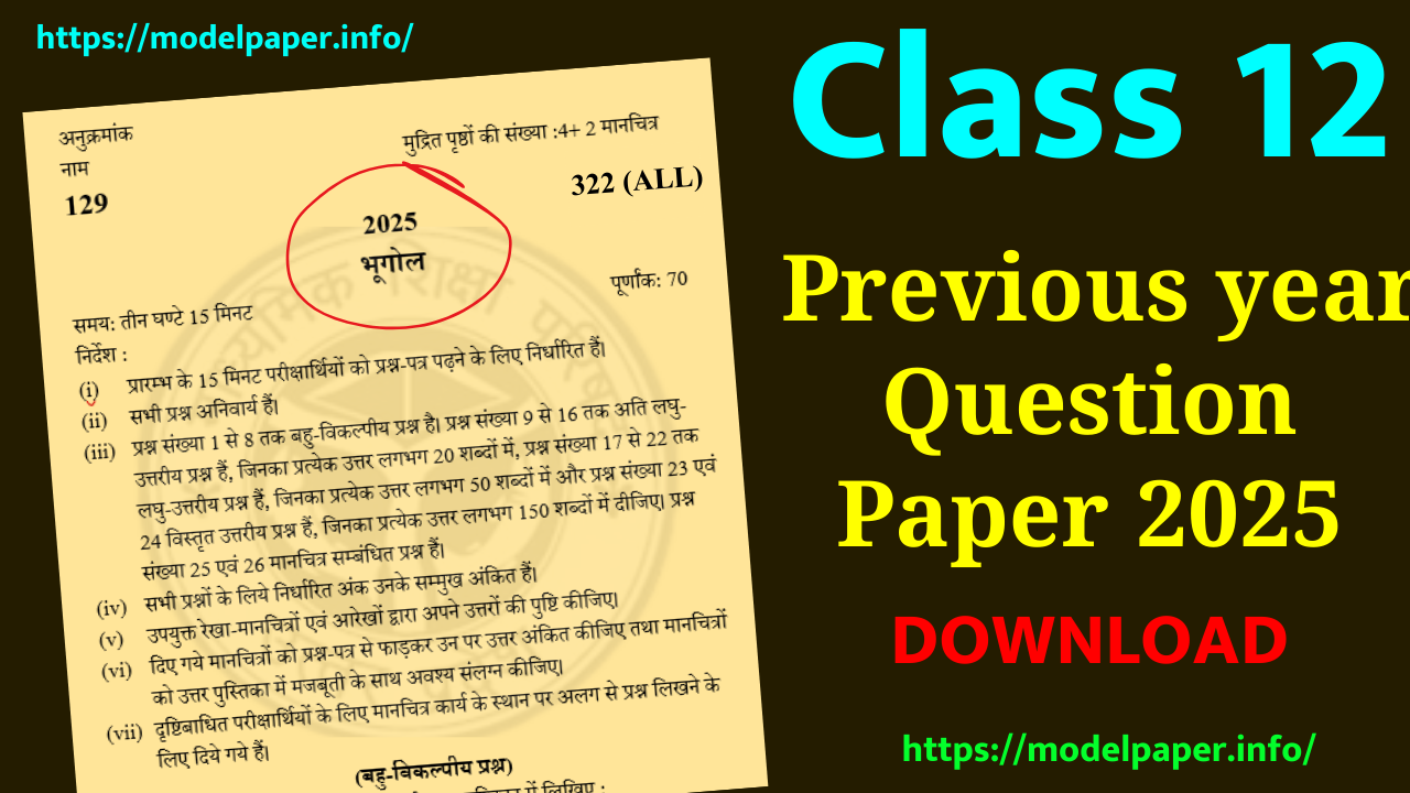 UP Board Class 12 Geography Previous Year exam model paper 2025 Download PDF यूपी बोर्ड कक्षा 12 भूगोल प्रश्न पत्र 2025 की पीडीऍफ़ 2025 Previous Year Model Paper PDF. Class 12 Geography Question Paper 2025 Download PDF