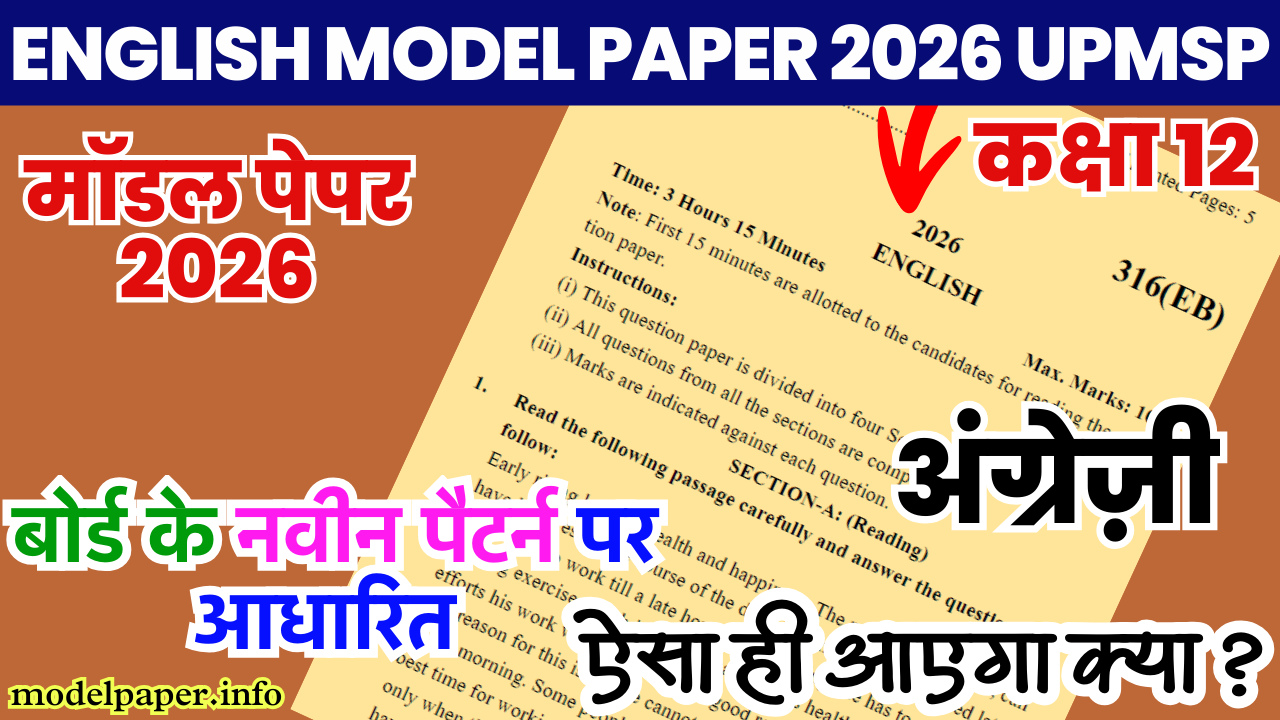 Class 12th English Model Paper 2026- UP Board New Question Paper 2026 session 2025-26 UPMSP ऐसा ही आयेगा?