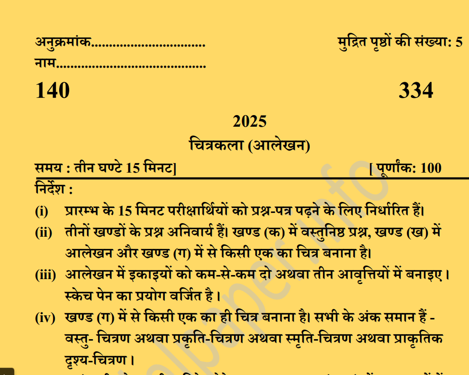 कक्षा 12 चित्रकला (आलेखन) प्रश्नपत्र यूपी बोर्ड परीक्षा 2025