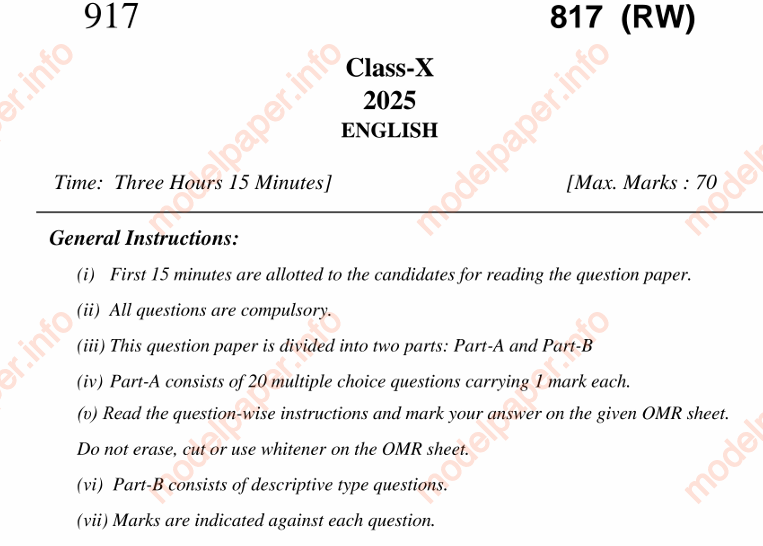 English class 10 Latest model paper 2025 with pdf || 817 (RW) || अंग्रेज़ी कक्षा 10 प्रश्न पत्र 2025 की पीडीऍफ़ Model Paper, New Model Paper Question PDF Free