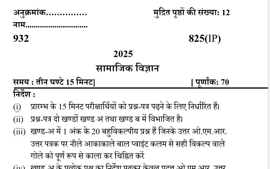 (i) प्रारम्भ के 15 मिनट परीक्षार्थियों को प्रश्न-पत्र पढ़ने के लिए निर्धारित हैं।
