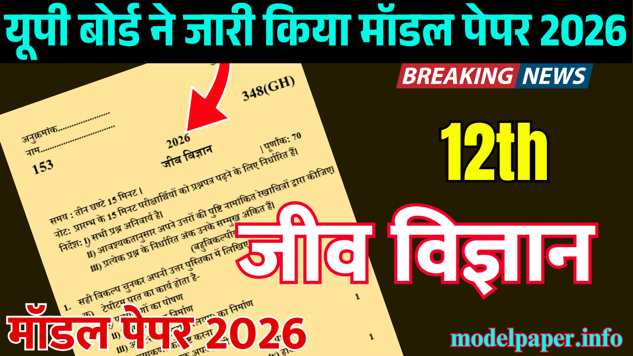 UP Board Class 12 Biology Model Paper 2026 जारी हो गया है। यह पेपर 2025–26 सेशन के विद्यार्थियों के लिए बहुत महत्वपूर्ण है। यूपी बोर्ड (UPMSP) ने नया प्रश्नपत्र पैटर्न लागू किया है, जिससे छात्रों को बोर्ड परीक्षा की तैयारी में आसानी होगी। इस मॉडल पेपर में पूछे जाने वाले संभावित प्रश्न, अंक विभाजन और परीक्षा पैटर्न की झलक मिलती है। Class 12 Biology Model Paper 2026, UP Board Biology Question Paper 2026. UPMSP Biology Model Paper 2026. 12th Biology Paper UP Board 2026. Class 12 Biology New Question Paper 2026