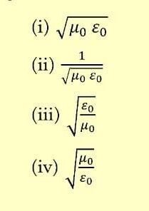 (च) वैद्युतशीलता () तथा चुम्बकशीलता () के माध्यम में विद्युत चुम्बकीय तरंग का वेग होगा- 1