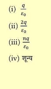 (ख) एक बन्द पृष्ठ के भीतर ‘n’ वैद्युत द्विध्रुव स्थित हैं। बन्द पृष्ठ से निर्गत वैद्युत फ्लक्स होगा- 1